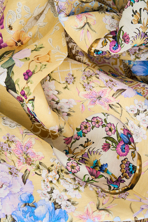 The Darling Buds Ruffle High Low Dress With Long Sleeve is a handcrafted silk silhouette designed by our in house artisans. Reimagined in an exclusive limited edition print, our high-low dress features a beautiful bow