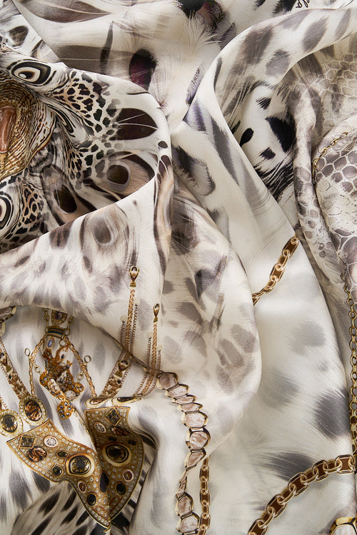 The Lady Lionheart Long Casual Jacket With Pockets is a handcrafted silhouette designed by our in house artisans. Reimagined in an exclusive limited edition print, this casual jacket is cut with long sleeves and falls to an elongated, full length hemline. It features functional pockets and textured details for luxurious comfort and is finished with intricately placed crystal embellishments.