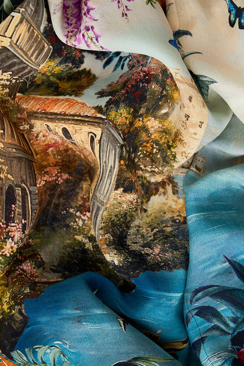 The Bodrum Botanicals Tiered Dress With Collar is a handcrafted silhouette designed by our in house artisans. Reimagined in an exclusive limited edition print, this tiered dress has been cut in a versatile, A-line shape with a button front for effortless wear. Its adorned with tiered, frilled sleeves framed by a collared neckline and is finished with intricately applied crystal embellishments for luminous detail.