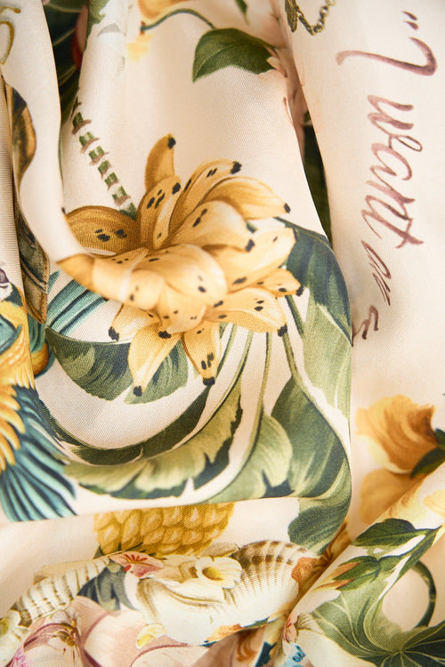 Designed in Australia, The Welcome To The White Lotus Long Sarong invites you to the CAMILLA x White Lotus Collaboration, where luscious sunset reveries and precious secrets collide in a decadent realm of mystery and